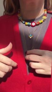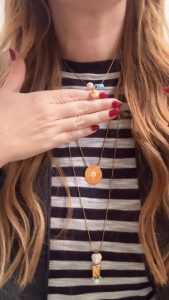 Τα κοσμήματα Allegra είναι κατασκευασμένα από μεταλλικά στοιχεία, πέρλες, κοχύλια και αλυσίδες, σε διάφορους συνδυασμούς χρωμάτων με κυρίαρχο στοιχείο το χρώμα του χρυσού.