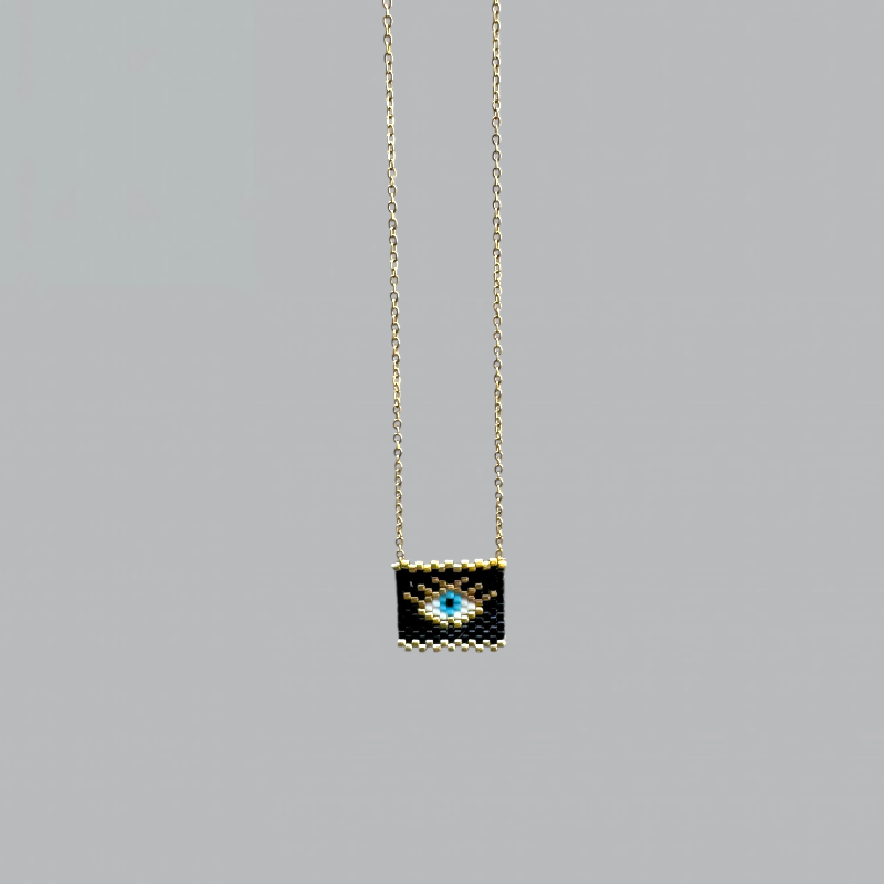 material: gold plated stainless steel chain, beaded eye motif.