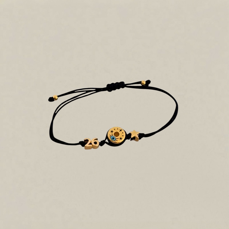 material: black synthetic cord, brass metal motifs with 24 K gold plating.