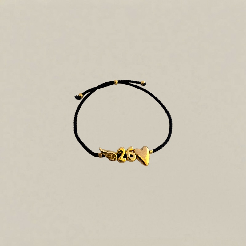 material: black synthetic cord, brass metal motifs with 24 K gold plating.