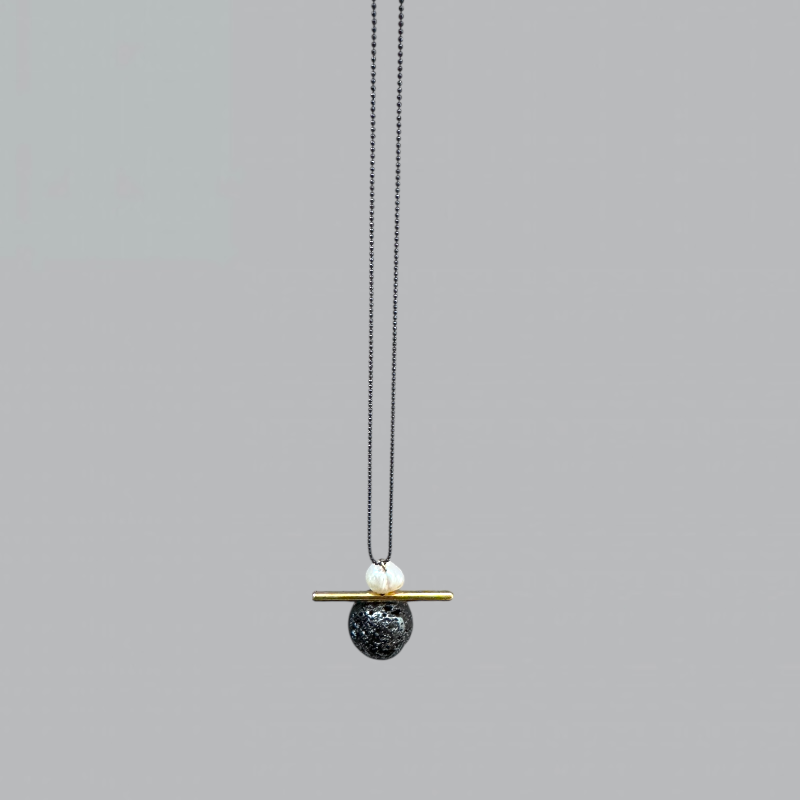 μαργαριτάρι του γλυκού νερού, ορειχάλκινο επιχρυσωμένο μοτιφ ,μεταλλική λάβα.