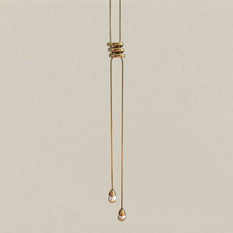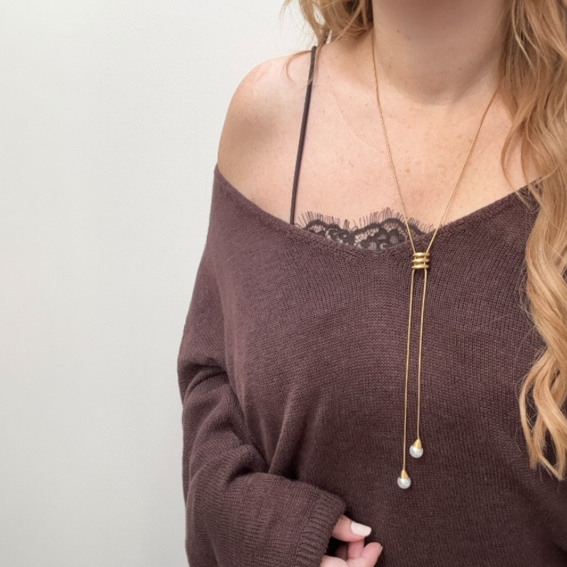 υλικό: ατσάλινο επιχρυσωμένο κολιέ, μοτιφ πέρλες.