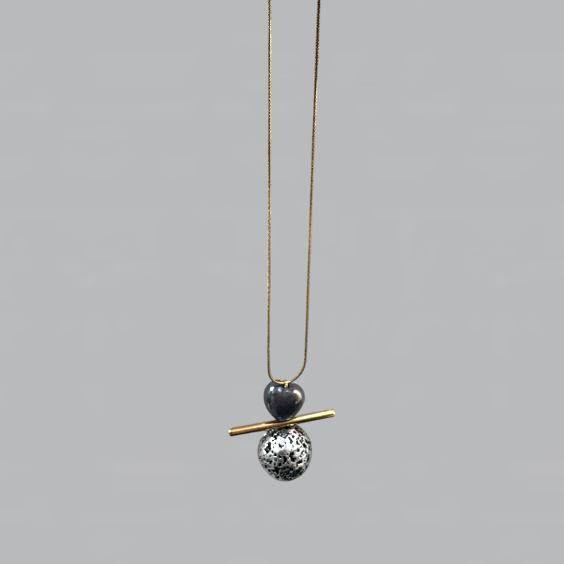 υλικό: ατσάλινη επιχρυσωμένη αλυσίδα φίδι, κεραμικό μοτιφ καρδιά ,ορειχάλκινο μοτιφ με επιχρύσωση 24Κ , μεταλλική λάβα.