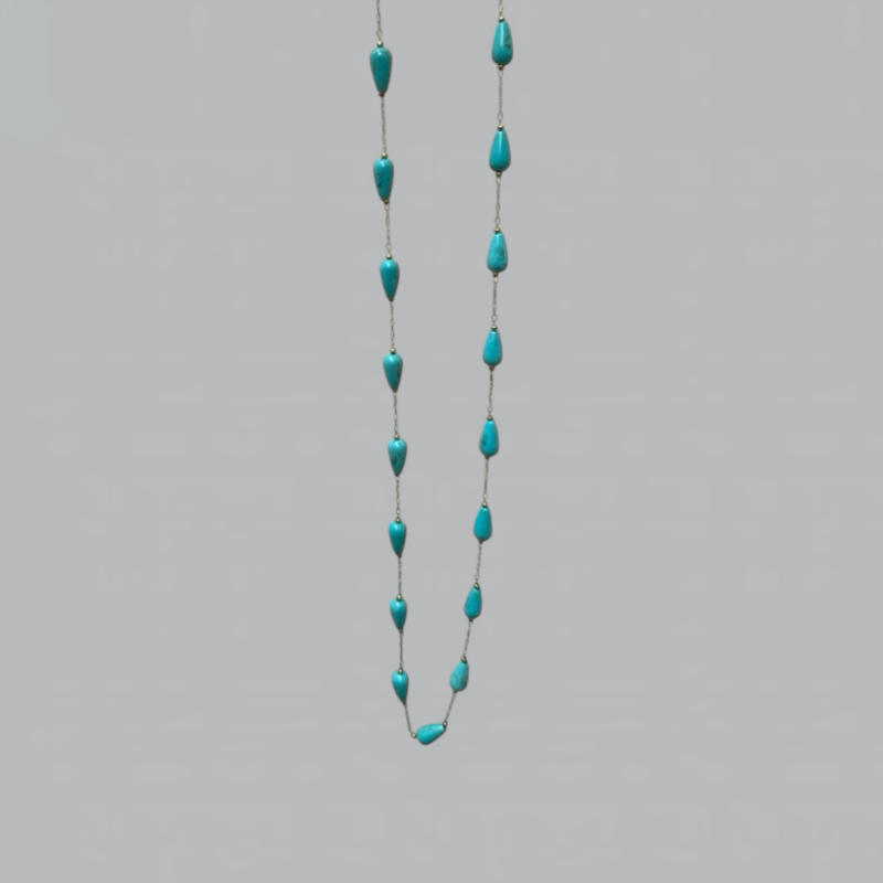 υλικό: ατσάλινη επιχρυσωμένη αλυσίδα ροζάριο, δάκρυα χαολίτη.