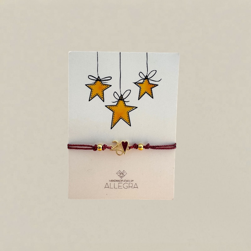υλικό: κόκκινο συνθετικό κορδόνι, ορειχάλκινα μοτιφ βιτρώ με επιχρύσωση 24Κ.