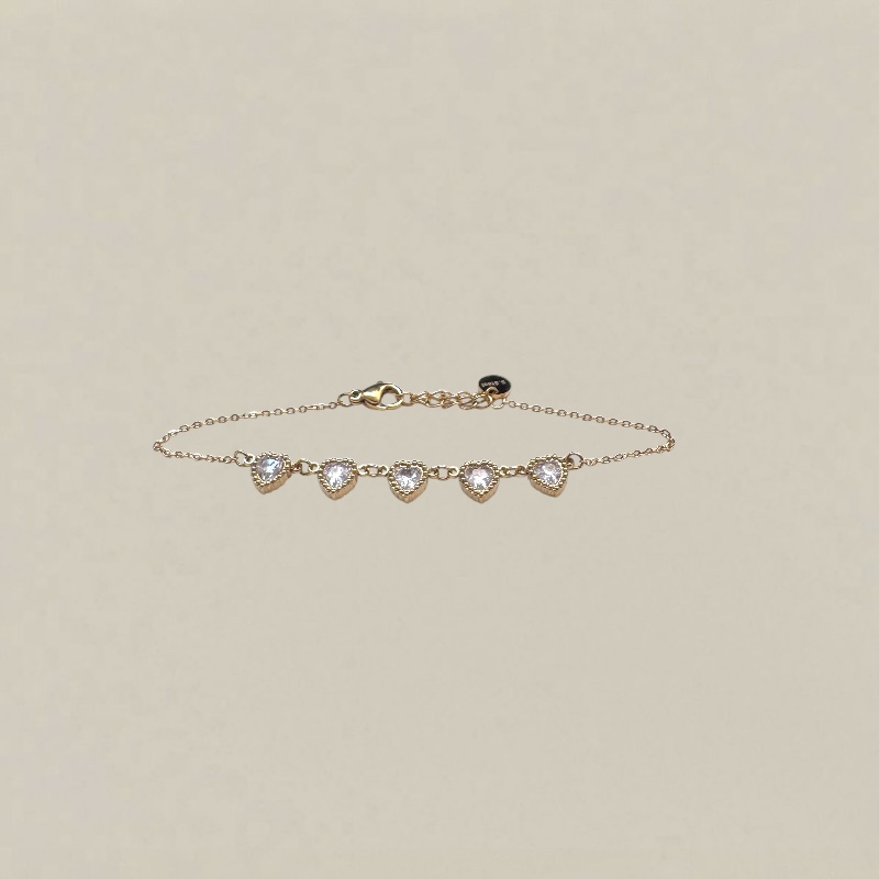 υλικό: επιχρυσωμένο ατσάλινο βραχιόλι, καρδιές κρύσταλλα.